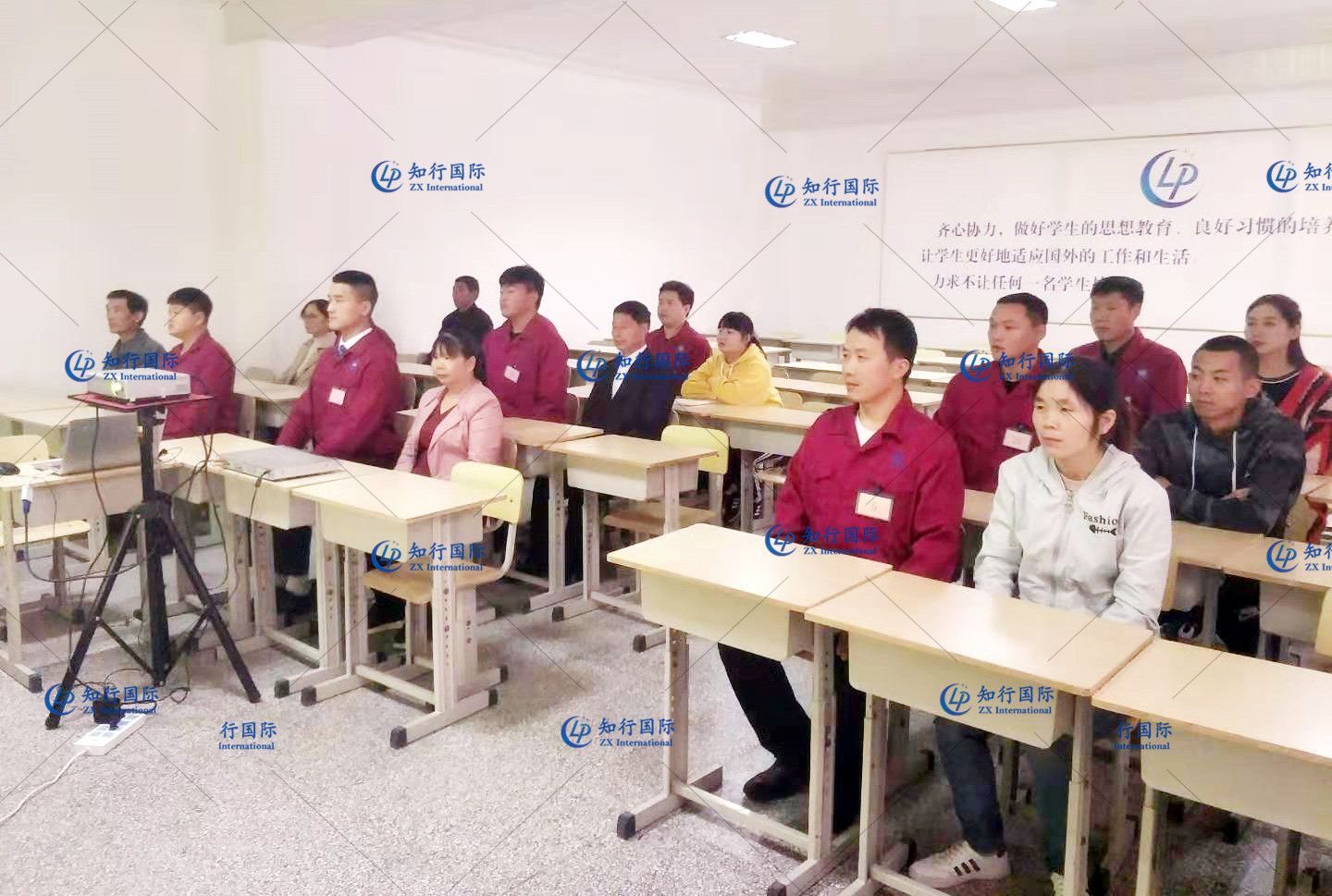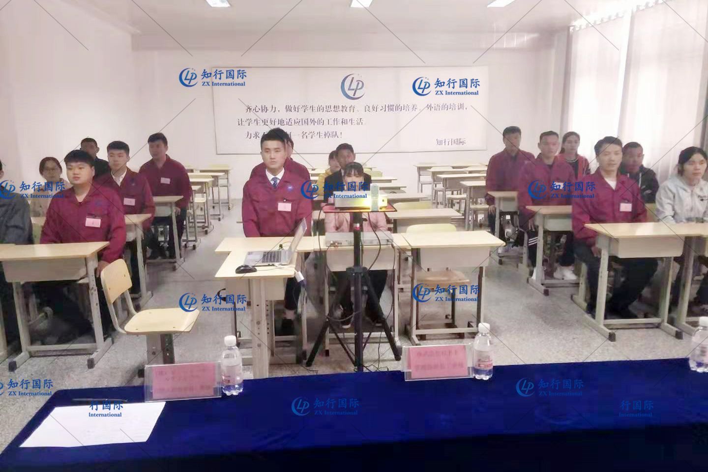 在面試開(kāi)始之前,知行國(guó)際及日方企業(yè)代表走進(jìn)教室與大家進(jìn)行交流,為學(xué)員介紹會(huì)社信息,日常工作流程以及就職環(huán)境等說(shuō)明,給予大家鼓勵(lì),預(yù)祝學(xué)員們?nèi)〉煤玫某煽?jī)。