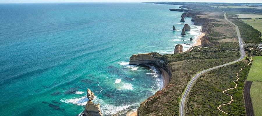 經(jīng)過多年不斷的修整,如今的大洋路始于吉隆止于波特蘭(Portland),全程約260公里,是公認的全球最為壯觀的海岸車道之一。大洋路的風(fēng)景從初始段的沖浪海灘(SurfCoast)經(jīng)奧特威(Otway)獨特蒼翠的雨林區(qū)再到沉船海岸(ShipwreckCoast)險峻的巖岸區(qū),有三種不同風(fēng)景強烈的對比,沿途每一個彎道,都帶給游客不一樣驚奇。