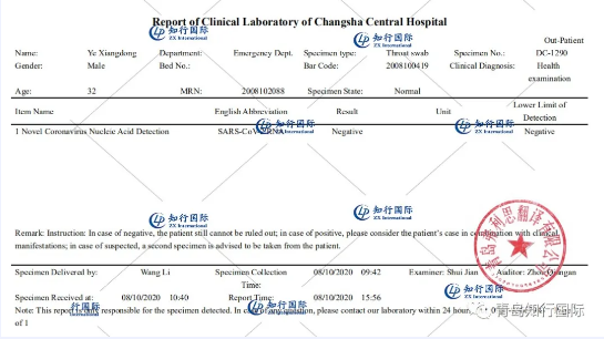 經(jīng)過與航空公司溝通交流,了解到芬蘭要求做核酸檢測(cè)乘機(jī)。因此入境前工作人員通知葉師傅去當(dāng)?shù)蒯t(yī)院做了一份檢驗(yàn)報(bào)告,并附了一份翻譯件證明。