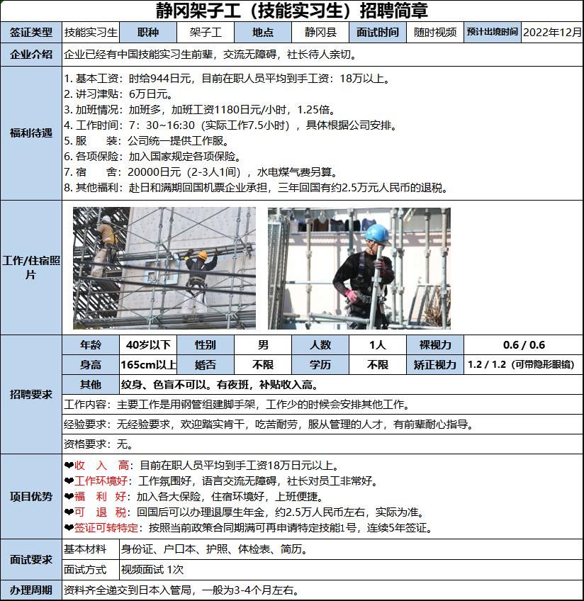 具體工作主要在物流會社做物品分揀,要求身體健壯。