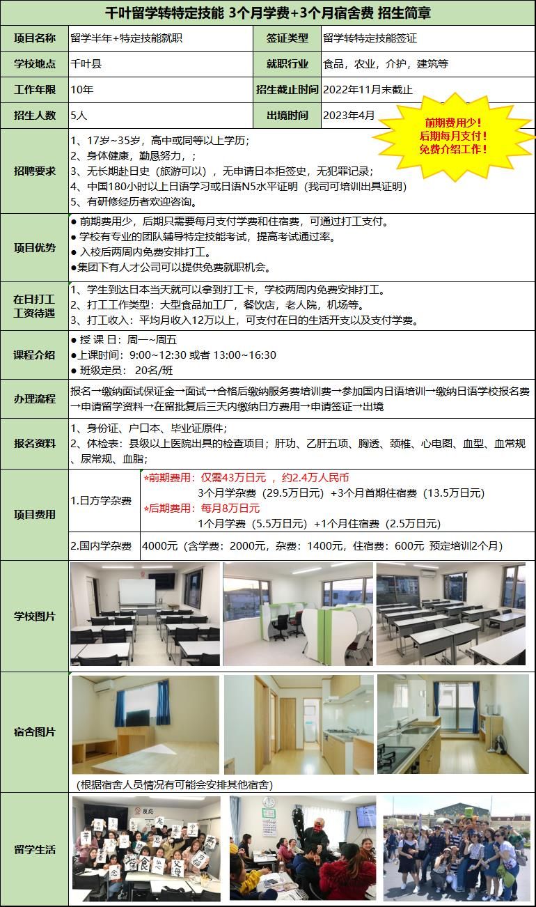 前期費(fèi)用少!后期每月支付!免費(fèi)介紹工作!平均月收入12萬以上,可支付在日的生活開支以及支付學(xué)費(fèi)。