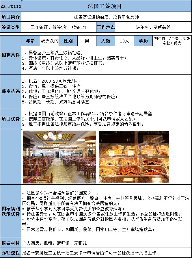 有后廚經(jīng)驗(yàn)或有相關(guān)餐飲經(jīng)驗(yàn)優(yōu)先,不會(huì)者可培訓(xùn);稅后:1900歐元/月,后期根據(jù)個(gè)人情況漲薪.
