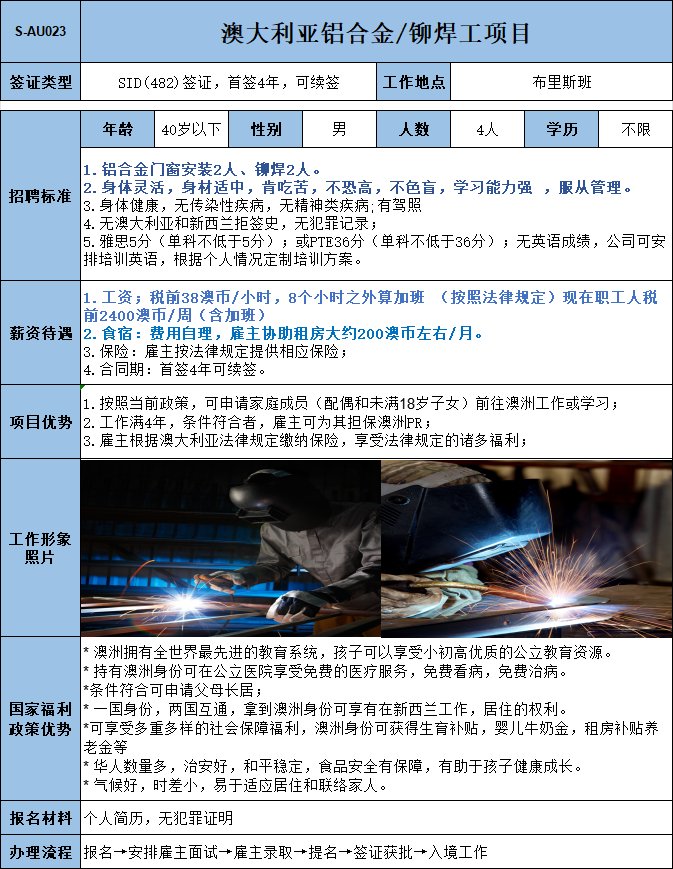 安裝鋁合金門窗,1年以上相關(guān)工作經(jīng)驗;年薪73150澳幣。