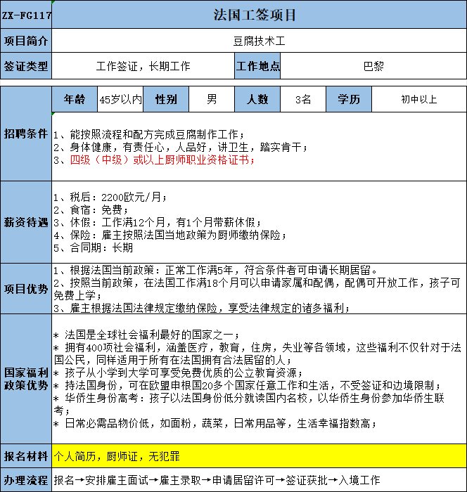 有后廚經(jīng)驗或有相關(guān)餐飲經(jīng)驗優(yōu)先,不會者可培訓(xùn);稅后:1900歐元/月,后期根據(jù)個人情況漲薪.